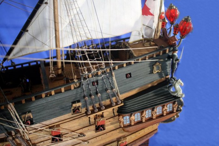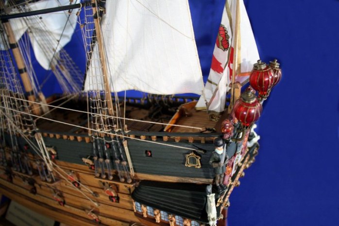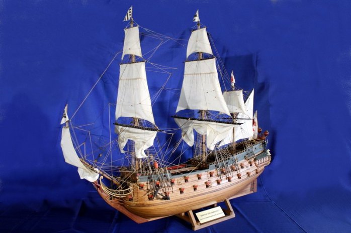Nel Diciassettesimo secolo l’Impero tedesco non era adeguatamente attrezzato per proteggere le sue rotte commerciali e le sue navi, soprattutto nel Mediterraneo, erano attaccate dalle veloci navi corsare. Nel 1667 la città di Amburgo, particolarmente danneggiata da questi fatti, decise la costruzione di due navi da guerra destinate alla protezione dei convogli. Erano il Leopoldus Primus ed il Wappen Von Hamburg. Il Wappen Von Hamburg è stato costruito nel cantiere navale di Deichtor, ad Amburgo, da un maestro d’ascia olandese. La costruzione cominciò nella primavera del 1667, quando fu posata la chiglia. Lo scafo fu ultimato nel 1668 e, dopo l’armamento, la nave entrò in servizio nel 1669 sulle rotte che collegavano il Nord Europa con Malaga, Cadice e Lisbona. Nell’Ottobre del 1683, durante un viaggio a Cadice, un furioso incendio, scoppiato a bordo, raggiunse il deposito delle munizioni e la nave andò completamente distrutta. Nell’incidente persero la vita 64 uomini su 220 fra i quali l’ammiraglio Berent Jakobsen Karpfanger.