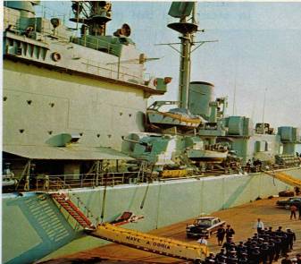 Così abbiamo potuto anche ricostruire tanti particolari mancanti del modello in modo quasi perfetto, come le ancore tipo Ansaldo, pressoché ignorate dalla maggior parte della documentazione specifica e rifatte in base ad un vecchia fotografia della prua della nave. Così pure sono state interamente ricostruite le scialuppe e i motoscafi, che erano stati asportati dal modello originale, nonché la maggior parte delle torrette e dei cannoni, i missili, le zattere di salvataggio, i radar e le varie manovre di coperta.
